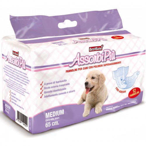 BestBone Plienky AssonbiPi 12 ks. - plienky pre psov, plienky - Veľkosť: M