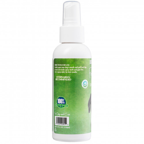 Zubný sprej Bio-Groom Fresh Bark No Brushing bez vône je rýchly a pohodlný spôsob, ako osviežiť dych vášho domáceho maznáčika bez čistenia zubov – jednoducho ho nastriekajte na zuby vášho domáceho maznáčika. Pridanie chlórhexidínu pomáha znižovať počet patogénov v ústach vášho domáceho maznáčika, ktoré spôsobujú zápach z úst a prispievajú k zlému zdraviu ďasien. Zloženie bez vône a chuti účinkuje rýchlo a pomáha znižovať hromadenie zubného povlaku a zubného kameňa. Zubný sprej Bio-Groom Fresh Bark No Brushing bez vône: osviežuje dych, pomáha odstraňovať zubný povlak, pomáha znižovať hromadenie zubného kameňa, nevyžaduje čistenie zubov, rýchlo pôsobí, s chlórhexidínom, bez farbív, bez chuti a zápachu. Návod na použitie: Jemne otvorte papuľu psa a odtiahnite pery, aby ste rovnomerne nastriekali sprej na zuby a ďasná. Pre dosiahnutie najlepších výsledkov používajte 2 – 3-krát denne. Zloženie: Čistená voda, cetyltrimetyl, chlorid amónny, izostearyl, etylimidazolínium etosulfát, glukonát chlórhexidínu (20 % roztok), metyl-4-izotiazolín-3-ón, glycerín