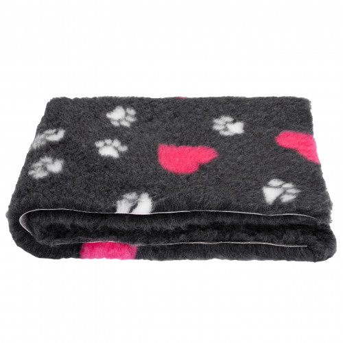 Blovi DryBed A+ - protišmyková posteľ, pelech pre domáce zvieratá, grafit s labkami a srdiečkami - 150x150cm
