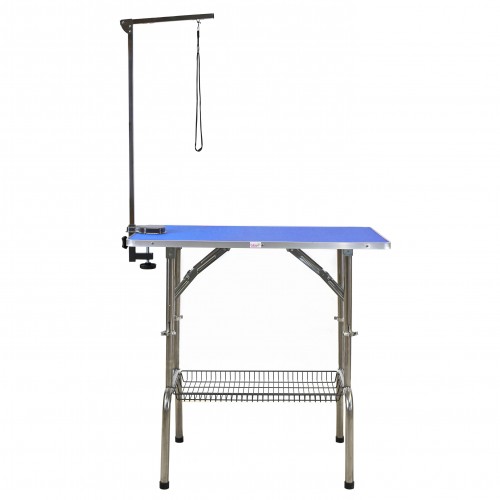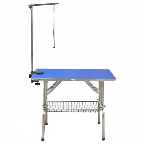 Pevný orezávací stôl od Blovi s pohodlným nastavením výšky. Vybavený výložníkom a košíkom na drobné príslušenstvo. Masívna MDF doska je pokrytá protišmykovou podložkou, ktorá sa ľahko udržuje v čistote. Jednostranné rameno (šibenica) je výškovo nastaviteľné a má aj upravovacie vodítko na pripnutie psa. Nastavenie výšky stola je rýchle a jednoduché pomocou malej páčky. Rozsah nastavenia: od 75 cm do 90 cm. Hrubé nohy stola sú vyrobené z kvalitnej ocele, vďaka čomu model stojí bezpečne a stabilne. Model sa odporúča najmä pre malé plemená psov. Na výber štyri farby pracovnej dosky.