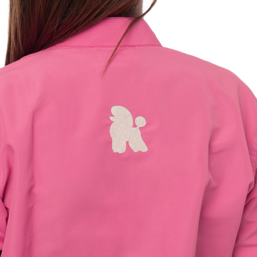 Profesionálny overal Blovi Overall Pink kombinuje eleganciu s funkčnosťou, ktorá je nevyhnutná pre každý salón pre domáce zvieratá. Je vyrobený z polyesterového materiálu, ktorý je vysoko odolný voči chumáčom chlpov, čo vám umožňuje udržiavať bezchybný a hygienický vzhľad. Špeciálna štruktúra látky uľahčuje odstraňovanie zachytených chlpov. Okrem toho je tento materiál odolný voči pokrčeniu a rýchlo schne, čo je obzvlášť užitočné pri nabitom programe salónu. Oblek má rovný strih, ktorý sa hodí pre rôzne typy postáv. Vybavený elastickým pásom zaisťuje perfektné prispôsobenie bez nepríjemného tlaku, čo je obzvlášť dôležité pri častom ohýbaní alebo krčení. Vrchná časť obleku sa zapína na zips, ktorý je navyše prekrytý chlopňou na suchý zips, aby sa zabránilo náhodnému rozopnutiu. Záhyb ďalej zvyšuje mechanickú pevnosť celého obleku, pretože chlopňa absorbuje významnú časť namáhania vznikajúceho pri náhlych pohyboch, ohýbaní alebo zdvíhaní zvierat. Zipsy v spodnej časti nohavíc umožňujú nastaviť šírku nohavíc tak, aby vyhovovali vašej obuvi, a uľahčujú rýchle obliekanie a vyzliekanie. Dve vrecká na úrovni bokov vám umožňujú uložiť drobné príslušenstvo, ktoré potrebujete vždy po ruke, ako sú pilníky, strojčeky na vlasy alebo zastrihávače. Odolné švy spevňujú konštrukciu odevu a pripravujú ho na intenzívne používanie v náročných podmienkach prostredia na strihanie. Výrazná ružová farba robí z týchto nohavíc jedinečný doplnok outfitu každého psieho stylistu. Estetické prevedenie a pozornosť k detailu robia z tohto odevu perfektný do profesionálneho salónu na strihanie. Kľúčové vlastnosti overalu Blovi Pink: dlhé rukávy a nohavice, materiál odolný voči chlpom, minimalizované krčenie, rýchloschnúci, rovný strih, elastický pás so zipsom, dodatočné zapínanie na suchý zips pre väčšie spevnenie, zipsy v spodnej časti nohavíc, dve vrecká na príslušenstvo, odolná konštrukcia, farba: ružová. Rozmery: Pre výber správnej veľkosti si pozrite informácie v tabuľke nižšie. Obrázok v galérii zobrazuje, kde boli merania odmerané. Nohavice boli merané v plochom stave. Veľkosť S M L XL XXL 3XL 4XL Dĺžka nohavíc (A) 74 cm 74 cm 75 cm 76 cm 77 cm 78 cm 80 cm Šírka pása (B) 36-46 cm 37-47 cm 38-52 cm 39-53 cm 40-56 cm 42-59 cm 43-60 cm Šírka bokov (C) 55 cm 58 cm 60 cm 61 cm 62 cm 65 cm 68 cm Šírka stehien (D) 28 cm 29 cm 31 cm 31,5 cm 32 cm 33 cm 34 cm Šírka nohavíc (E) 21 cm 21,5 cm 22 cm 23 cm 23 cm 23 cm 24 cm Výška sedu (F) 28 cm 28 cm 29 cm 30 cm 32 cm 32 cm 33 cm Dĺžka horného dielu (G) 42 cm 45 cm 46 cm 46 cm 49 cm 50 cm 51 cm Šírka pod pazuchou (V) 56 cm 59 cm 61 cm 65 cm 67 cm 70 cm 73 cm Dĺžka rukáva od ramena (I) 58 cm 60 cm 61 cm 64 cm 65 cm 65 cm 67 cm