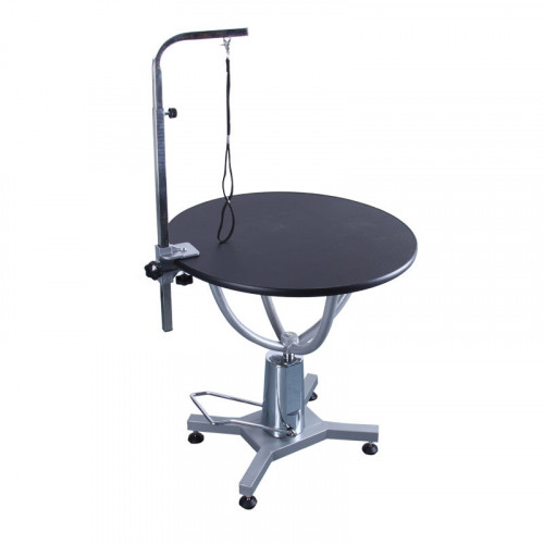 Pevný a stabilný stôl na strihanie psov s hydraulickým zdvihom a otočnou doskou od Blovi. Pohodlné nastavenie výšky v rozsahu od 71,5 do 86 cm. Sada obsahuje jednostranné rameno na strihanie a vodítko na pripevnenie psa. Otočnú dosku je možné uzamknúť. Vrchnú dosku je potrebné priskrutkovať k rámu. Ideálne pre malé a stredné plemená zvierat. Technické údaje: doska vyrobená z MDF dosky s priemerom 70 cm, nastavenie výšky v rozsahu: od 71,5 cm do 86 cm, hmotnosť: približne 35 kg, súčasťou balenia: rameno a vodítko k dispozícii, farby dosky: čierna a ružová