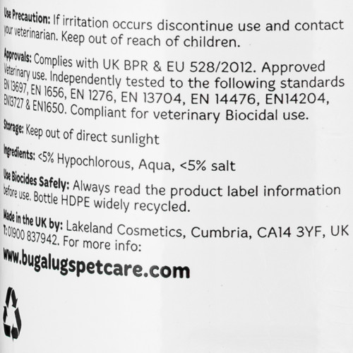 Bugalugs Antiseptické očné kvapky sú antiseptické očné kvapky pre psy a mačky, ktoré pomáhajú odstraňovať nečistoty a zaschnuté sekréty. Pomáhajú eliminovať podráždenie a menšie zápaly a pomáhajú zmierniť suchosť a opuch okolo očí. Ich osvedčené zloženie používa kyselinu chlórnu, známu svojimi antibakteriálnymi, antivírusovými a protiplesňovými vlastnosťami. Túto látku produkuje imunitný systém zvieraťa ako prirodzenú reakciu na zápal a infekciu. Tieto hypoalergénne kvapky sú šetrné k pokožke, pomáhajú ju čistiť a urýchľujú hojenie menších rán a škrabancov. Sú užitočné na upokojenie alergií, podráždení a menších infekcií. Jednoduché použitie, nevyžaduje oplachovanie; stačí naliať niekoľko kvapiek do očí vášho domáceho maznáčika. Produkt má vyvážené pH a neobsahuje vône, alkohol, parabény, silikóny, SLES, SLS, DEA a enzýmy. Bezpečné pre ústa, uši, nos a ďalšie citlivé oblasti. Vhodné pre psy, mačky, kone, vtáky a všetky ostatné malé zvieratá. Použitie antiseptických očných kvapiek Bugalugs: upokojuje podráždenie očí, odstraňuje nečistoty a zaschnuté sekréty, znižuje suchosť a opuch okolo očí, odstraňuje mierne zápaly a upokojuje alergické reakcie. Návod na použitie: Jemne vypláchnite oko a vyhnite sa kontaktu medzi hrotom aplikátora a okom. Používajte 3-4-krát denne alebo podľa pokynov veterinárneho lekára. Na preventívnu starostlivosť používajte raz denne alebo podľa potreby. Ak sa objaví podráždenie, prestaňte prípravok používať a poraďte sa s veterinárom. Uchovávajte mimo dosahu detí. Bezpečnostné informácie: Ak sa objaví podráždenie, prestaňte prípravok používať a poraďte sa s veterinárom. Uchovávajte mimo dosahu detí. Pred použitím si vždy prečítajte etiketu výrobku. Skladujte mimo dosahu priameho slnečného žiarenia. HDPE fľaša je široko recyklovateľná.
