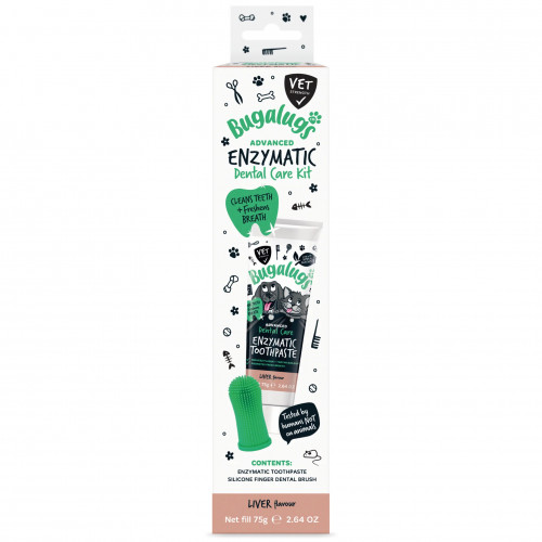 Bugalugs Enzymatic Dental Care Kit 75g - enzymatická zubná pasta so silikónovou kefkou na prsty pre psy a mačky