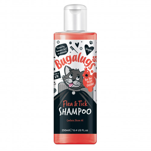 Bugalugs Šampón proti blchám a kliešťom pre mačky - ochranný šampón pre mačky s neemovým olejom - 250 ml