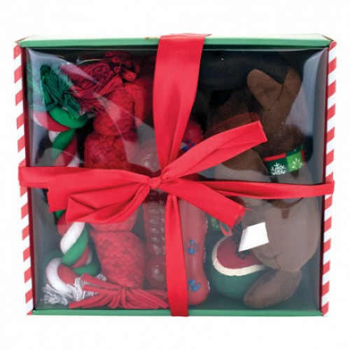 Darčekové balenie 6 ks vianočných hračiek pre psov. Vynilové aj pískacie. Ideálny darček pre Vášho maznáčika.