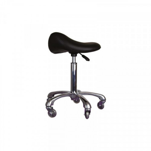 Profesionálna stolička Rodeo: Konské sedlo je ergonomické sedlo, ktoré podporuje lepšiu pozíciu a zabraňuje tak bolestiam chrbta. Pri sedení držíte telo v správnej pozícii, pri dlhšom sedení uľavujete svojmu chrbtu. Vďaka kolieskam proti chĺpkom, ktoré sú ideálne pri úprave, sa môžete ľahko otáčať okolo stola. Má kolieska, ktoré nezachytávajú chlpy. Výška variabilná od 55 do 74 cm. Hrúbka sedu je 3,5 cm x 8,5 cm v rozkroku a priemer sedadla je 42 cm.