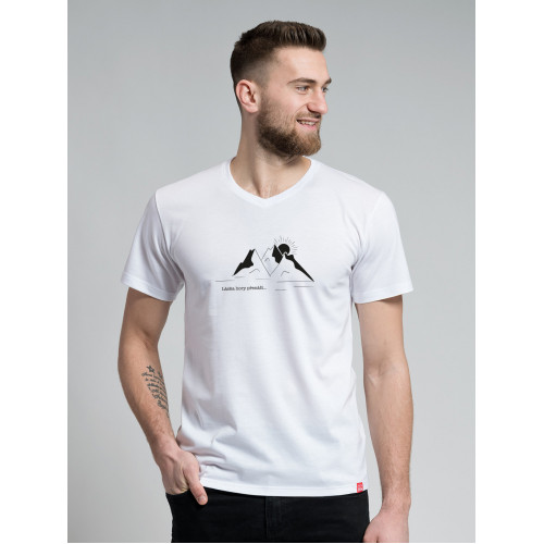 BONDY Pánske tričko bielej potlačou láska hory prenáša
