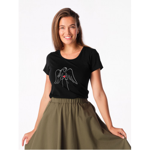 BREDA Dámske tričko čiernej potlačou Anjel