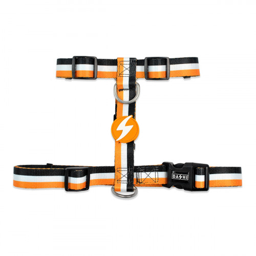 Chrbtový postroj Dashi Stripes Orange & Black - nastaviteľný postroj na ochranu psa, popruhy - S