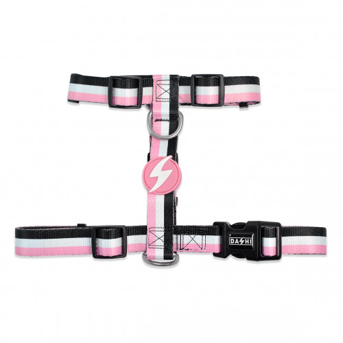 Chrbtový postroj Dashi Stripes Pink & Black - nastaviteľný postroj na ochranu psa, popruhy - M