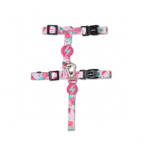 Dashi Flamingo Cat Harness + Leash - mačací postroj a vodítko, set, vzor plameniaka