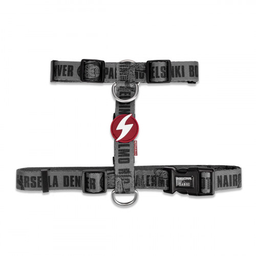 Dashi La Casa De Papel Melted Back Harness - nastaviteľný postroj na stráženie psa, motív zo série House of Paper, grafit - L