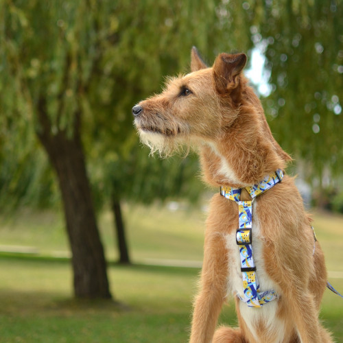 Dashi Nebula Back Harness - postroj na stráženie psa, modrý a žltý abstraktný vzor - L