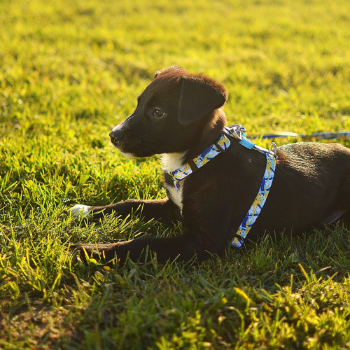 Dashi Nebula Back Harness - postroj na stráženie psa, modrý a žltý abstraktný vzor - S