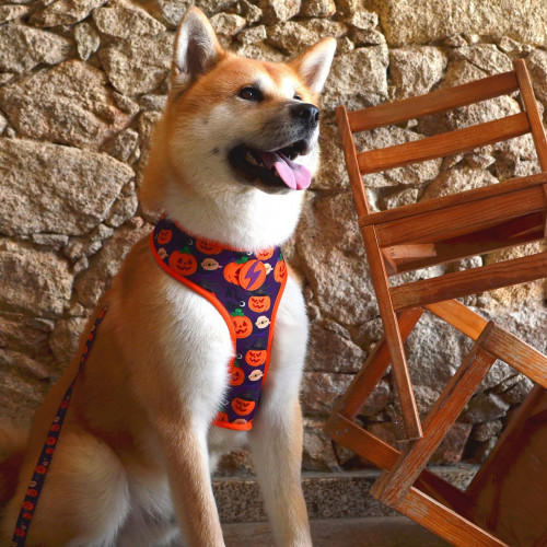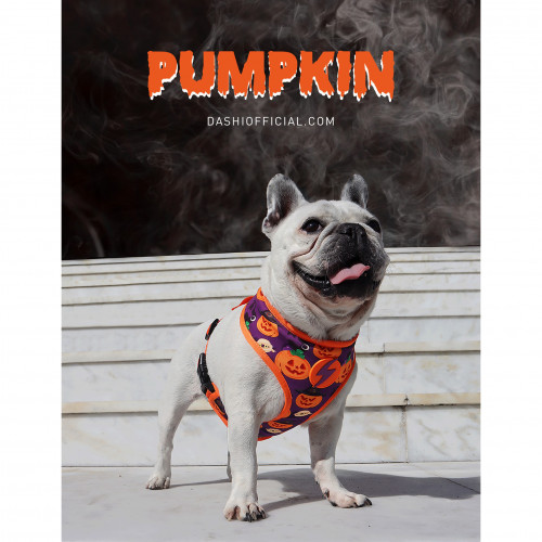 Dashi Pumpkin Neo Mesh postroj - beztlakový, obojstranný postroj pre psa, halloweensky tekvicový vzor - M