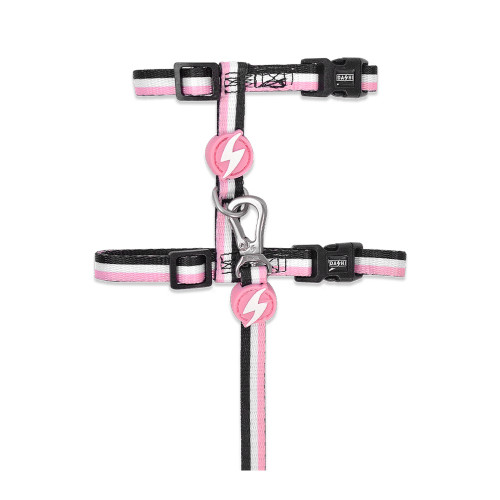 Dashi Stripes Pink & Black Cat Harness + Leash - postroj a vodítko pre mačky, sada, ružové a čierne pruhy