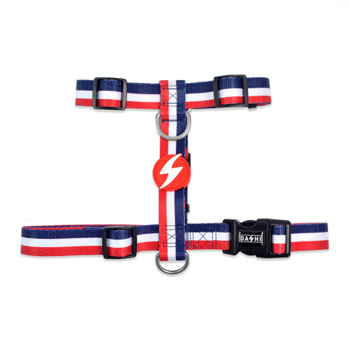 Dashi Stripes Red & Blue Back Harness - nastaviteľný postroj na ochranu psa, červené a modré pruhy - M