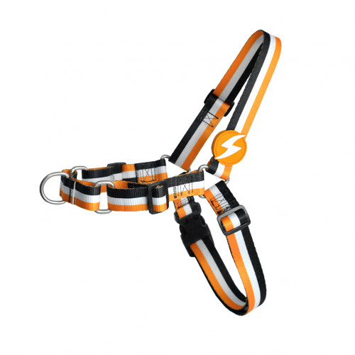 Predný postroj Dashi Stripes Orange & Black - postroj pre nórskeho psa, bez ťahania, pruhy - M
