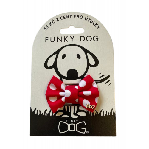 Bodky sú elegantné a milé :) 55 Kč = 2,15 € z každého motýlika venujeme psíkom v núdzi. Motýliky sú ručné práce, väčšia časť výroby prebieha v chránených dielňach. Motýlik sa na obojok alebo postroj pripevňuje pomocou suchého zipsu. Psíkom motýlik nevadí, ani z neho nebývajú nervózni. Motýlik je prispôsobený na denné nosenie, nie je to len móda na slávnostné príležitosti. Motýlik je symbol podpory útulkov, každý, kto nosí FUNKY DOG svetu ukazuje, že podporuje svojich kamarátov útulkáčov.