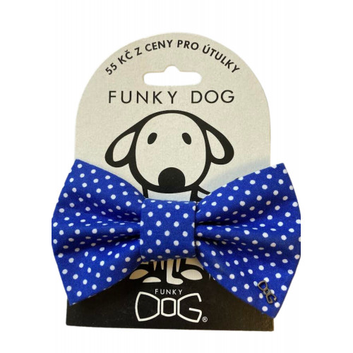 Bodky sú elegantné a milé :) 55 Kč = 2,15 € z každého motýlika venujeme psíkom v núdzi. Motýliky sú ručné práce, väčšia časť výroby prebieha v chránených dielňach. Motýlik sa na obojok alebo postroj pripevňuje pomocou suchého zipsu. Psíkom motýlik nevadí, ani z neho nebývajú nervózni. Motýlik je prispôsobený na denné nosenie, nie je to len móda na slávnostné príležitosti. Motýlik je symbol podpory útulkov, každý, kto nosí FUNKY DOG svetu ukazuje, že podporuje svojich kamarátov útulkáčov.
