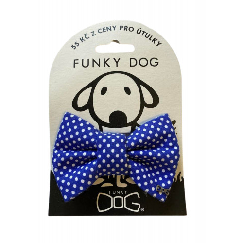 Bodky sú elegantné a milé :) 55 Kč = 2,15 € z každého motýlika venujeme psíkom v núdzi. Motýliky sú ručné práce, väčšia časť výroby prebieha v chránených dielňach. Motýlik sa na obojok alebo postroj pripevňuje pomocou suchého zipsu. Psíkom motýlik nevadí, ani z neho nebývajú nervózni. Motýlik je prispôsobený na denné nosenie, nie je to len móda na slávnostné príležitosti. Motýlik je symbol podpory útulkov, každý, kto nosí FUNKY DOG svetu ukazuje, že podporuje svojich kamarátov útulkáčov.