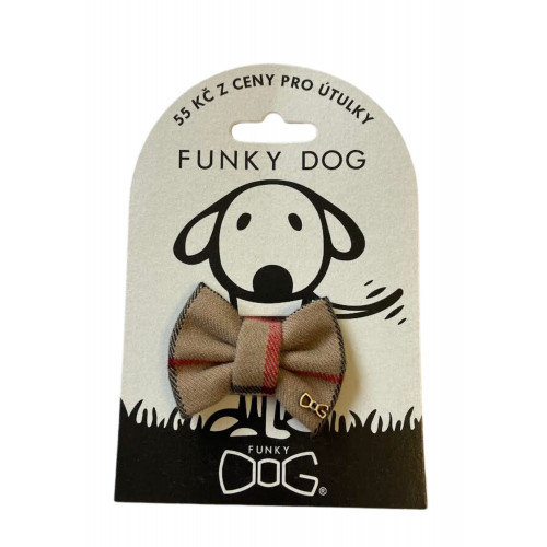 Károvaný motýlik je nutnou výbavou každého elegána, či už je to sučka alebo psík. 55 Kč = 2,15 € z každého motýlika venujeme psíkom v núdzi. Motýliky sú ručné práce, väčšia časť výroby prebieha v chránených dielňach. Motýlik sa na obojok alebo postroj pripevňuje pomocou suchého zipsu. Psíkom motýlik nevadí, ani z neho nebývajú nervózni. Motýlik je prispôsobený na denné nosenie, nie je to len móda na slávnostné príležitosti. Motýlik je symbol podpory útulkov, každý, kto nosí FUNKY DOG svetu ukazuje, že podporuje svojich kamarátov útulkáčov.