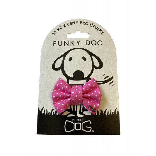 Bodky sú elegantné a milé :) 55 Kč = 2,15 € z každého motýlika venujeme psíkom v núdzi. Motýliky sú ručné práce, väčšia časť výroby prebieha v chránených dielňach. Motýlik sa na obojok alebo postroj pripevňuje pomocou suchého zipsu. Psíkom motýlik nevadí, ani z neho nebývajú nervózni. Motýlik je prispôsobený na denné nosenie, nie je to len móda na slávnostné príležitosti. Motýlik je symbol podpory útulkov, každý, kto nosí FUNKY DOG svetu ukazuje, že podporuje svojich kamarátov útulkáčov.