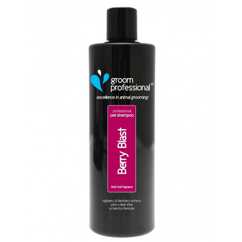Groom Professional Berry Blast je čistiaci šampón, ktorý dôkladne odstraňuje nečistoty zo srsti a dodáva jej hlboký, čistý lesk. Má posilňujúce a regeneračné vlastnosti. Výťažky z plodov černice a malíny neutralizujú nepríjemné pachy a pomáhajú udržiavať prirodzenú rovnováhu vlhkosti pokožky. Tento šampón je vhodný na každodenné použitie. Koncentrát 1:10. Návod na použitie: Namočte srsť psa. Naneste šampón a dôkladne vmasírujte. Nechajte pôsobiť niekoľko minút. Opláchnite teplou vodou. V prípade potreby opakujte. Zabráňte kontaktu s očami. Zloženie: voda, laurylsulfát sodný, dietanolamid kokosovej mastnej kyseliny, chlorid sodný, etylénglykoldistearát, monoetanolamid kokosovej mastnej kyseliny, laurylalkohol etoxylovaný 10 mol etylénoxidu, kyselina mravčia, kyselina citrónová, vôňa, benzylalkohol, metylchlórizotiazolinón, metylizotiazolinón, farbivá CI 42090, CI 17200, CI 12251.