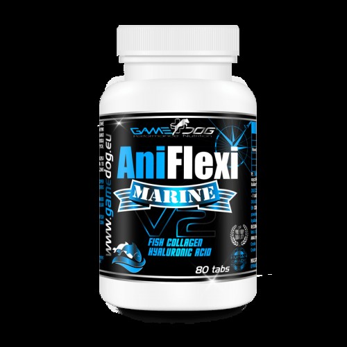 Game Dog AniFlexi Marine je prípravok pre psov s obsahom kolagénu z morských rýb a kyseliny hyalurónovej. Podporuje správne fungovanie a regeneráciu kĺbov. Odporúča sa najmä pre domáce zvieratá, ktoré bojujú s chorobami súvisiacimi s degeneráciou pohybového aparátu. Môže sa podávať profylakticky šteňatám a mladým dospelým v období intenzívneho rastu, aby sa predišlo abnormalitám vo vývoji kĺbovej chrupavky. Užitočné pre dospelých psov náchylných na ochorenia kĺbov. Balenie obsahuje 80 tabliet Prípravok bol pripravený z najkvalitnejších surovín. Všetky látky v ňom obsiahnuté majú status Human Grade, čo znamená, že spĺňajú prísne výživové normy pre ľudí. To zaručuje vysokú účinnosť a bezpečnosť použitia pre Vášho miláčika Indikácie na použitie: podpora liečby degeneratívnych ochorení kĺbov, protizápalový účinok pri ochoreniach kĺbov a kože, podpora vývoja chrupaviek u šteniat, prevencia kĺbov u psov s predispozíciou na degeneratívne ochorenia. ochorenia, prevencia pohybového aparátu u aktívnych psov, redukcia príznakov kolapsu priedušnice Kľúčové zložky: Hydrolyzovaný rybí kolagén Peptan® - základný proteín, ktorý buduje chrupavky, šľachy a väzy. Proces hydrolýzy kolagénu zlepšuje jeho biologickú dostupnosť pre telo, čím umožňuje výživu spojivových tkanív, ktoré budujú napr. kĺbov a kostí. Zlepšuje hustotu kostí, posilňuje ich odolnosť voči mechanickým faktorom. Zlepšuje štruktúru chrupavky a iných kĺbových prvkov. Pravidelné podávanie zlepšuje pohyblivosť a flexibilitu kĺbov a znižuje bolesť spojenú s degeneráciou kĺbov. Žraločia chrupavka – prírodný zdroj GAG, hlavne chondroitín. Chondroitín je zložka prirodzene sa vyskytujúca v telesných chrupkách a synoviálnej tekutine. Je zodpovedný za udržanie ich biomechanických vlastností - odolnosť proti stlačeniu, primeranú úroveň hydratácie, ktorá znižuje trenie medzi pohyblivými prvkami kĺbov vo vzájomnom kontakte. Podporuje rekonštrukciu chrupaviek, spomaľuje degeneratívne procesy, znižuje výskyt zápalov v kĺboch. Slávka zelená novozélandská obsahuje množstvo zdraviu cenných látok: bioaktívne peptidy, EPA a DHA mastné kyseliny (oslabujúce príznaky a progresiu degenerácie), antioxidanty, protizápalové zlúčeniny a mnohé iné! Vďaka bohatstvu účinných látok pôsobí mnohými spôsobmi: zmierňuje opuchy a zápaly, znižuje chronickú bolesť spojenú s degeneráciou a spomaľuje degeneráciu štruktúr, ktoré tvoria kĺby. Glukozamín – prirodzená zložka chrupavky a synoviálnej tekutiny. Stimuluje telo k syntéze kolagénu, čo zlepšuje proces regenerácie chrupavky. Stimuluje produkciu synoviálnej tekutiny, ktorá znižuje trenie medzi kĺbovými štruktúrami. V kombinácii s chondroitínom znižujú stuhnutosť kĺbov, pôsobia proti opuchom a analgeticky. Kyselina hyalurónová – prirodzene sa vyskytujúci glykozaminoglykán (GAG) v tele, súčasť chrupavky a synoviálnej tekutiny. Vďaka svojej schopnosti viazať vodu reguluje stupeň hydratácie tkanív, čo ovplyvňuje ich elasticitu, a tiež udržuje správnu viskozitu tekutiny v kĺbovom puzdre, čím sa znižuje trenie medzi kĺbovými štruktúrami v kontakte. Vitamín C – stimuluje tvorbu kolagénu v tele a zabraňuje jeho degradácii. Stimuluje tvorbu buniek tvoriacich kosti, spomaľuje procesy osteoporózy a podporuje rýchlejšiu regeneráciu po úrazoch. Ako antioxidant znižuje zápal v tele a zmierňuje bolesť. Dávkovanie: Podávajte 1 tabletu na každých 15 kg telesnej hmotnosti psa. Psy s hmotnosťou do 15 kg: podávajte 1 kapsulu denne. Psy s hmotnosťou nad 45 kg - 3 tablety denne. Zloženie: hydrolyzovaný rybí kolagén Peptan, mrazom sušená múčka zo žraločej chrupavky, mrazom sušená múčka z novozélandskej zelenej mušle (Perna canaliculus), glukosamín sulfát (z kôrovcov), hyaluronát sodný, kyselina askorbová, mikrokryštalická celulóza, kyselina stearová, účinné látky stearát horečnatý v jednej kapsule: rybí kolagén 140 mg, kyselina hyalurónová 300 mg, žraločia chrupavka 300 mg. Slávka zelená novozélandská 250 mg, Glukosamín sulfát 50 mg, Kyselina hyalurónová 30 mg, Vitamín C 30 mg