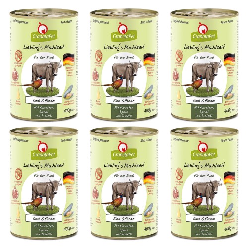 GranataPet Beef & Bažant - bezobilné mokré krmivo pre psov, hovädzie mäso a bažant - 6x 400g