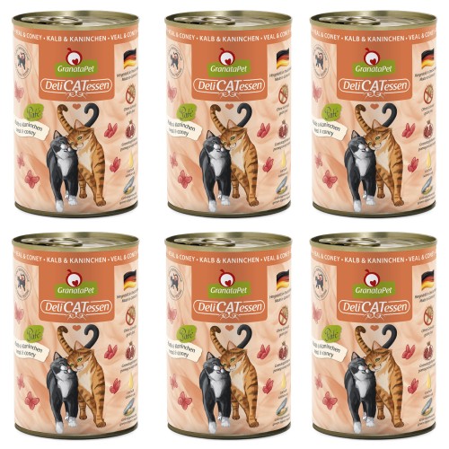 GranataPet DeliCatessen Veal & Coney - bezobilné mokré krmivo pre mačky, teľacie mäso a králiky - 6x 400g