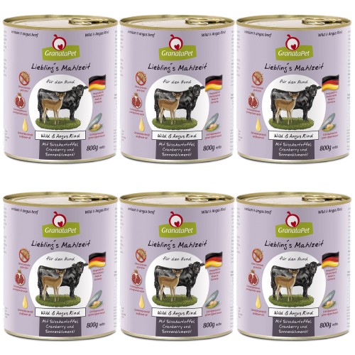 GranataPet Venison & Angus Beef - mokré krmivo pre psov bez obilnín, divina a hovädzie mäso - 6x 800g