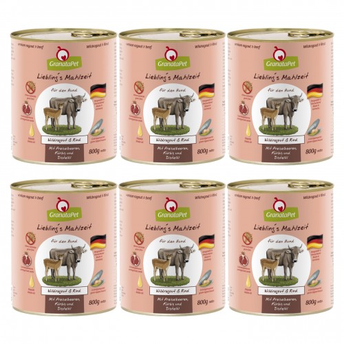 GranataPet Venison Ragout & Beef - bezobilné mokré krmivo pre psov, divinu a hovädzie mäso - 6x 800g