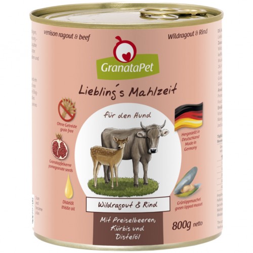 GranataPet Venison Ragout & Beef - bezobilné mokré krmivo pre psov, divinu a hovädzie mäso - 800 g