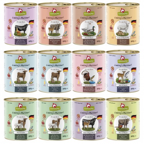Sada krmiva GranataPet 12x 800g - bezobilné mokré krmivo pre psov, mix 10 príchutí
