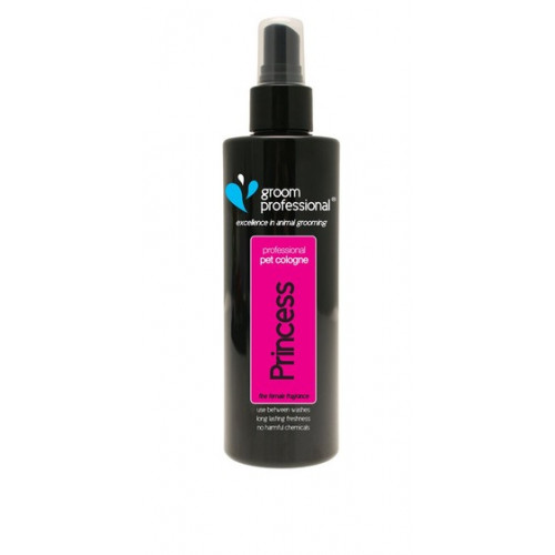 Groom Professional Princess Cologne je jemná a osviežujúca vôňa pre sučky. Je založená na osviežujúcej vonnej kompozícii s tónmi mandarínky, citrónu, ruže a jazmínu. Dodáva srsti jedinečnú vôňu a lesk a zároveň ju osviežuje. Je bezpečná pre pokožku a srsť a je vhodná na časté používanie. Vďaka intenzívnej vôni je veľmi účinná.