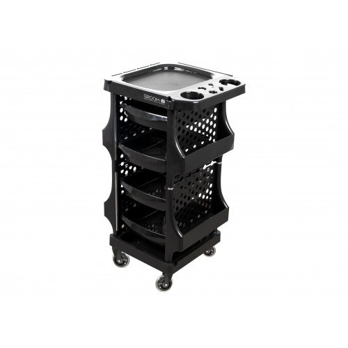 Tento stolík má 4 zásuvky, ktoré je možné na oboch stranách plne vysunúť. Vaše nástroje a materiál nebudú po otvorení zásuviek kĺzať tam a späť, pretože sú vybavené protišmykovým prúžkom. Super praktické pri tomto modeli je, že môžete hore zacvaknúť 3 zásuvky do strán. Materiál tak máte na dosah a navyše máte extra veľkú pracovnú plochu. Hľadáte stolík na vybavenie, ktorý pojme množstvo fliaš? Potom je stolík Emma tou najlepšou voľbou! Na oboch stranách zásuviek sú dve veľké priehradky, kam sa perfektne vo vzpriamenej polohe zmestia aj vyššie produkty, ako sú šampóny alebo spreje. Navyše sa tento všestranný stolík ľahko premiestňuje vďaka 4 hladkým, plne uzavretým otočným kolieskam. Pretože kolieska nie sú otvorené, nebudú sa upchávať chlpy. Je to všetko v detailoch: - užívateľsky príjemný luxusný stolík - vybavený 4 plne výsuvnými zásuvkami s protišmykovým dnom - s vysoko kvalitnými kolieskami pre ľahký pohyb - skvelé na skladovanie a prepravu vybavenia - elegantný čierny vzhľad Materiál: plast, hliník a polyuretán Pokyny na čistenie: Možno čistiť mierne navlhčeným had. Rozmery: Celkové rozmery: 44,5 x 40,5 x 86 cm Rozmery zásuvky (vnútorné): 29,5 x 22,5 x 6,5 cm* Vyžaduje vlastnú montáž. * Všetky rozmery sú približné.