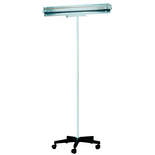 Germicídna lampa na stojane: určená na zvýšenie a udržanie úrovne mikrobiologickej čistoty miestností, tieto zariadenia vyžarujú UV-C žiarenie s vlnovou dĺžkou 253,7nm, nenávratne deaktivujú baktérie, vírusy, plesne, huby a všetky ostatné mikroorganizmy, germicídna lampa účinne dezinfikuje vzduch a povrchy, reflektor vyrobený z veľmi kvalitného reflexného hliníka, určený pre použitie na operačných sálach, ošetrovniach, šatniach, pacientskych izbách, klinikách, laboratóriách, lekárňach, vo farmaceutickom, potravinárskom a kozmetickom priemysle, účinnosť baktericídne lampy potvrdené testami, všetky požadované certifikáty. Spôsob použitia: V závislosti od účelu miestnosti zapnite lampy na 2-8 hodín. Na dosiahnutie dočasného účinku dezinfekcie vzduchu v miestnosti (napr. medzi dvoma ošetreniami) zapneme lampy na 15-20 minút. Technické údaje: napájacie napätie: 230V 50Hz príkon: 75VA Prvok vyžarujúci UV-C žiarenie: 2xTUV30W Intenzita UV-C žiarenia na vzdialenosť 1 m: 3,6W / m2 životnosť radiátora: 8000h dezinfikovaný povrch: 18-22m2 otáčanie lampy (nastaviteľné ) uhol expozície: 270° trieda ochrany: I typ krytu: IP 20 typ prevádzky: priebežná kupola rozmery: 925 x 85 x 145 mm