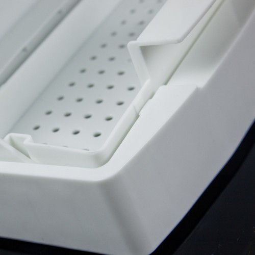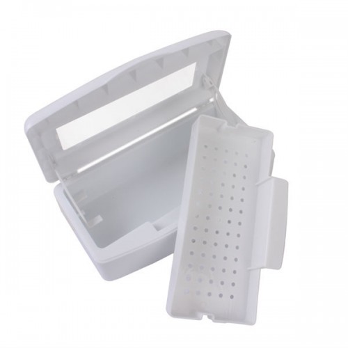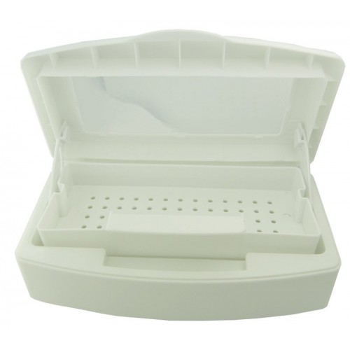 Praktická nádoba z odolného materiálu určená na čistenie a sterilizáciu nástrojov. Stačí naliať sterilizačný roztok, vložiť nástroje a uzavrieť nádobu sklopením podnosu nadol. Ideálne na čepele, pilníky, nožnice, hrebene a pod. Vonkajšie rozmery sterilizátora: výška: 7,5 cm šírka: 11 cm dĺžka: 22 cm Vnútorné rozmery sterilizátora (bez vaničky): výška 5 cm šírka 9 cm dĺžka 20,5 cm Vnútorné rozmery s vaňou: výška 2,5 cm šírka 7,9 cm dĺžka 19 cm Kapacita: cca 0,5 litra