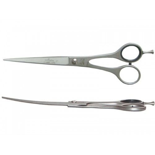 Nožnice Henbor, séria Classic, veľkosť 7 palcov - ohnuté. Špecializované ohnuté nožnice vyrobené z vysoko kvalitnej nehrdzavejúcej ocele. Profilované čepele umožňujú rezanie v oblúku. Na jednej čepeli je mikrobrúsenie. Mierne predĺžené otvory na prsty. Odnímateľná opierka prstov. Vyrobené v Taliansku.