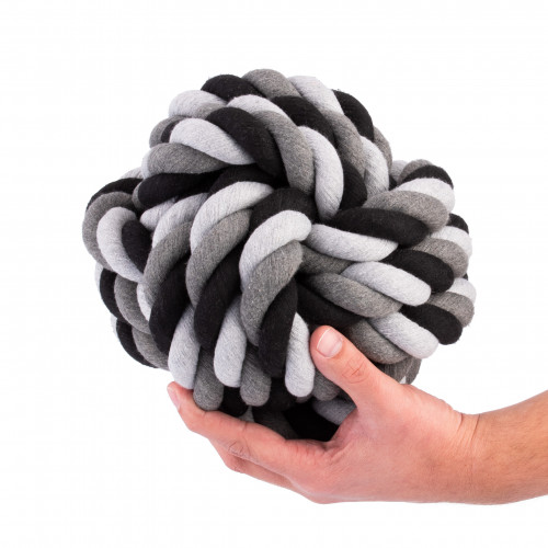 Váš miláčik je veľmi veľký pes a hľadáte pre neho vhodnú, prírodnú lanovú loptičku? Táto veľká, masívna, 2 kg dentálna loptička na laná bude pre neho ako stvorená. Sú mechanicky valcované, čo zaručuje ich odolnosť. Špeciálna väzba a prírodný materiál spôsobujú, že lano čistí zuby psa od zubného povlaku, zabraňuje tvorbe zubného kameňa a zápalu ďasien. Loptička sa potom stane súčasťou prevencie zdravej ústnej dutiny vášho miláčika. Hryzenie a aportovanie sú hry, ktoré pomáhajú zbaviť sa negatívnych a pozitívnych emócií vášho domáceho maznáčika a poskytujú činnosti, ktoré precvičia telo a myseľ. Lopta sa odporúča najmä pre: nemecké dogy, anglické a tibetské dogy a svätých bernardýnov Vlastnosti loptičky Dental Floss Toss: veľká veľkosť: priemer 24 cm veľká hmotnosť: 2 kg pre obrovských psov z lana zo 100% prírodného materiálu. bavlnené nite, recyklovateľné, pevná, masívna konštrukcia zaručuje skvelú zábavu na dlhú dobu, ideálne ako dentálne maškrty, spôsobom príjemným pre psa, zaisťuje správnu ústnu hygienu Parametre: priemer: 24cm hmotnosť: 2kg