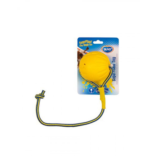 Hračka DUVO+ lopta plávajúca s lanom, žltá, priemer 10x49 cm