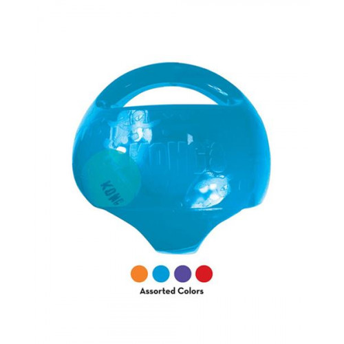 Hračka KONG Jumbler dva v jednom je lopta pre dvojnásobnú interaktívnu zábavu. Vnútro tenisovej loptičky a hlasné pískatko navádzajú ku hre, dva úchyty uľahčujú dvíhanie a trasenie