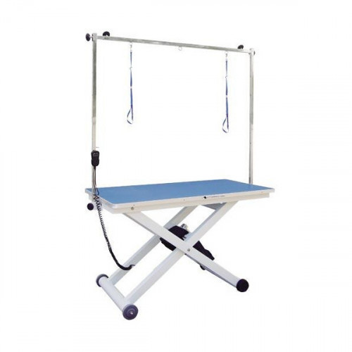 Pevný a robustný stôl elektrický stôl, ktorý predchádza problémom s chrbtom. Výnimočný dizajn s kolieskami na jednej strane stola. Stôl je úplne stabilný as veľmi malou námahou, miernym nadvihnutím na strane, kde nie sú kolieska, môžete stôl presunúť k vani... Rozmery dosky 120 x 65 cm. Variabilná výška od 42 cm až 96 cm. Farba dosky je modrá. Balenie obsahuje hrazdu a dva popruhy.