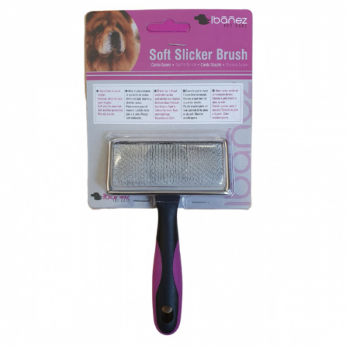 Ibánez drôtová kefa s extra jemnými a mäkkými drôtikmi s protišmykovou gumovou rukoväťou je ideálna pre použitie na mokrú srsť pri sušení. Pomáha rozčesať strapaté miesta, odstraňuje staré odumreté chlpy a dodáva srsti lesklý vzhľad. Dĺžka drôtikov 12 mm.