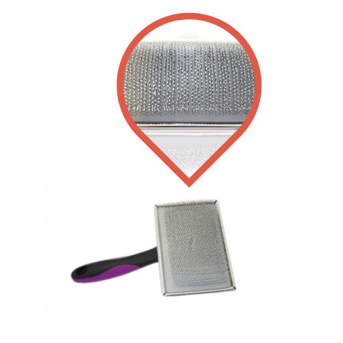 Drôtková kefa, ktorá má na konci drôtikov plastovú guľôčku. Ideálne pre nácvik česania šteniat a pre psy s veľmi citlivou kožou. Drôtiky opatrené plastovou guličkou neškriabu kožu psa. Nestrapatí ani netrhá srsť. Použitie: používajte v smere rastu srsti. Možno použiť ako na suché tak mokré česanie.
