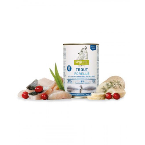 • ISEGRIM dog Adult Trout with Parsnip, Cranberries & Wild Herbs bal. 6 x 800 g konzerva