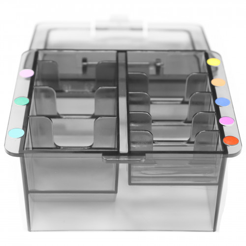 Sada 8 hrebeňových nástavcov Joyzze je sada 8 hrebeňových nástavcov určených pre čepele Joyzze radu C a väčšinu nastaviteľných čepelí. Tieto mimoriadne odolné nástavce z nehrdzavejúcej ocele zaisťujú perfektné výsledky. Oceľové štetiny kĺžu po srsti plynulejšie ako plastové. Sú tiež odolné, vysoko odolné voči poškodeniu, neohýbajú sa a ľahko sa čistia. Dokonale leštené a hladké okraje minimalizujú riziko porezania a sú bezpečné pre domáce zvieratá. Sada obsahuje 8 veľkostí nástavcov – 3 mm, 6 mm, 10 mm, 13 mm, 16 mm, 19 mm, 22 mm a 25 mm – čo vám umožňuje vybrať si ten správny pre potreby a fázu starostlivosti o srsť vášho psa alebo mačky. Každý nástavec je individuálne zafarbený, čo umožňuje rýchlu identifikáciu jednotlivých veľkostí. Sada obsahuje aj praktickú úložnú nádobu s priehradkami pre bezpečné a organizované uloženie nástavcov. Pre maximálne pohodlie používateľa je každý priehradka farebne odlíšená. 8-dielna sada nadstavcov Joyzee Vlastnosti: 8 rozperných podložiek pre čepele typu C Joyzee a väčšina nastaviteľných veľkostí nadstavcov: 3 mm, 6 mm, 10 mm, 13 mm, 16 mm, 19 mm, 22 mm, 25 mm Vyrobené z nehrdzavejúcej ocele, hladko kĺžu po srsti Odolné, odolné voči poškodeniu a ohýbaniu Bezpečné, leštené okraje Farebne odlíšené rozmery Vyhradený úložný priestor