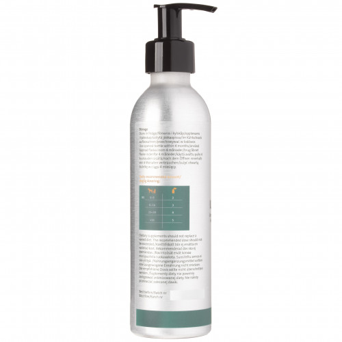 K9 Ultimate Nutritional Oil je výživový doplnok v olejovej forme pre psy a mačky, na báze švédskych rastlinných olejov, prirodzene bohatých na esenciálne mastné kyseliny. Obsahuje tiež olej z rias, udržateľnú alternatívu k rybiemu oleju. Tento kompletný doplnok podporuje nielen zdravie pokožky a srsti, ale aj zdravie kĺbov, mozgu a srdca. K9 Ultimate Nutritional Oil, vhodný pre domáce zvieratá všetkých vekových kategórií a úrovní aktivity, je vyrobený zo za studena lisovaného repkového a ľanového oleja, ktoré sa vyrábajú lokálne, hneď za rohom od továrne K9 Competition. Ľanový olej je prirodzene bohatý na mastné kyseliny ALA (omega-3), o ktorých sa preukázalo, že podporujú zdravú pokožku a srsť. Repkový olej je bohatý na mastné kyseliny omega-6, ktoré sú nevyhnutné pre zdravú funkciu mozgu, zdravé srdce a zdravú kožnú bariéru. Riasový olej použitý v K9 Ultimate má najvyššiu koncentráciu esenciálnych mastných kyselín EPA, DHA a DPA (omega-3) dostupnú na trhu. Priamym získavaním z pôvodného zdroja – pestovaných mikrorias – sa zachránia tony rýb, čo je šetrné k životnému prostrediu. Doplnok je obohatený o prírodný vitamín E. K9 Ultimate Nutritional Oil: rastlinná receptúra pre psy a mačky. Kombinácia repkového oleja, ľanového oleja a oleja z rias. Bohatý na omega-3 a omega-6 mastné kyseliny, podporuje zdravú funkciu mozgu a srdca. Podporuje zdravú pokožku a srsť. Použitie pestovaných mikrorias pomáha zachrániť množstvo rýb. Obohatený o vitamín E. Dávkovanie: Na určenie vhodnej dávky pre vášho domáceho maznáčika použite tabuľku nižšie. 1 stlačenie pumpy sa rovná približne 2,2 ml produktu. Hmotnosť psa/mačky (kg) Denná dávka (dávky) 0-5 2 6-14 3 15-30 4 >30 5 Zloženie: Zloženie: Švédsky za studena lisovaný repkový olej, švédsky za studena lisovaný ľanový olej, olej z rias Prísady: Vitamín E (D-alfa tokoferol 1b306) 4,5 mg/ml Analytické zloženie: tuk 100 %, bielkoviny 0 %, vláknina 0 %, popol 0 % Bezpečnostné opatrenia: Po otvorení uchovávajte v chladničke a spotrebujte do 4 mesiacov. Doplnky stravy by nemali nahrádzať pestrú stravu. Neprekračujte odporúčanú dávku.